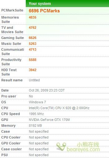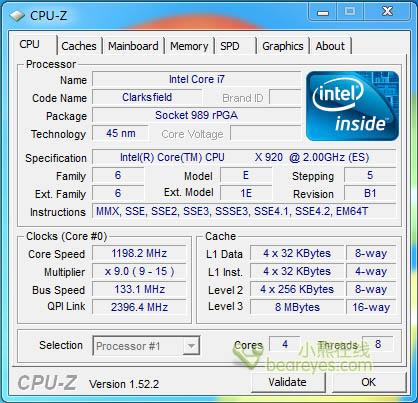 处理器 | Intel 酷睿 i7 920XM(2.0GHz,前端总线 1333, 2MB二级缓存 8MB三级缓存 |