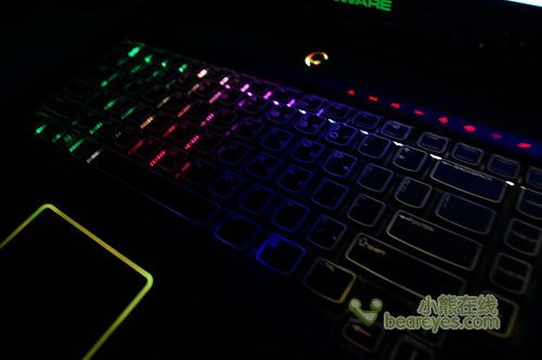 对于多媒体按键来说,该机依旧沿用了外星人系列机型的风格特点,全部采用了触摸式设计,包括光驱弹出、影音控制、WIFI开关、COMMAND CENTER以及性能转换等,使用起来也非常方便。