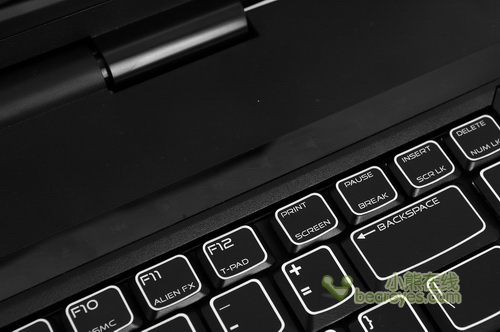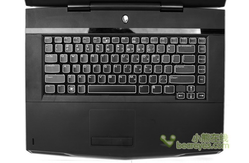 看完了华丽效果后,我们就真真切切的来感受一下该机键盘的风采吧。由于是15英寸设计,所以戴尔Alienware M15x的键盘部分取消了数字小键盘,这其实对于游戏玩家来说影响并不是会很大。在手感方面,该键盘键帽触感极佳,而且黑+白两种色调的配合也显得更加醒目。