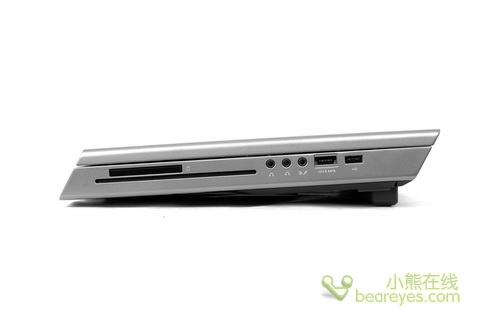 机身右侧是USB接口、e-SATA/USB复合接口、音频输入/输出接口以及蓝光刻录机和Express Card接口。