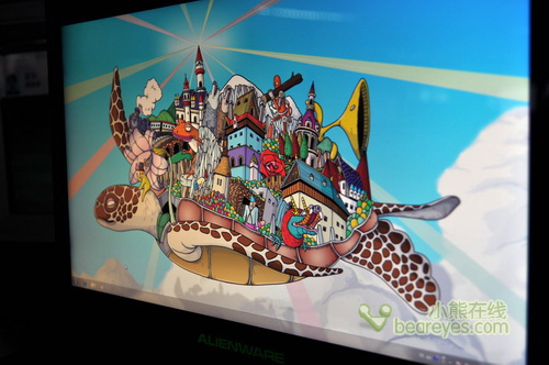 绝对出色的显示效果令笔者感到惊讶。我们从上面的图片中看到,整个画面色彩非常艳丽,而且可视角度也表现的尤为出色,非常适合游戏、电影等娱乐应用。