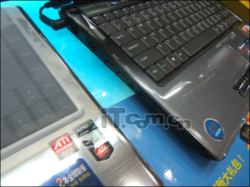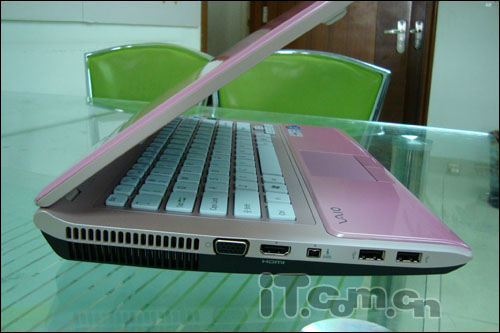 接口方面:提供了3个USB2.0接口,1个ExpressCard扩展卡插槽,1个多合一读卡器(xD、SD、MS、MS Pro、MMC、SDHC),1个VGA接口,1个HDMI接口接口,1个RJ11接口,1个RJ45接口,1组耳麦插孔,直流电源插孔以及安全锁孔等。