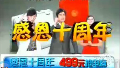 基本上,语气夸张、一唱一和、假装不可置信、虚假市场调研材料、电视特技美化产品、虚报原价、模糊产品型号等等电视购物基本招数全都用上了,最后还有一个狠招就是赠送“日本技术”300万像素DV一台,大多数会从电视购物购买产品的人看到这里基本都缴枪了。不过咱们还是先来看看这款产品,从头至尾,3位功力完全不弱于侯总的主持人一直不厌其烦的大吼499元让你买到笔记本!!!只要499!只卖499!原价3499,十周年感恩、跳楼、喷血、卖艺不卖身、直降3000元!