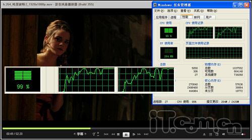 在测试整机性能之余小编还播放了几款不同编码的高清电影来测试微星U100的多媒体播放的性能,结果发现除了1080p的纯高清外,1080i及544p的播放都是非常清晰,CPU的占用率也保持在70%左右,丝毫也没有卡机的现象。