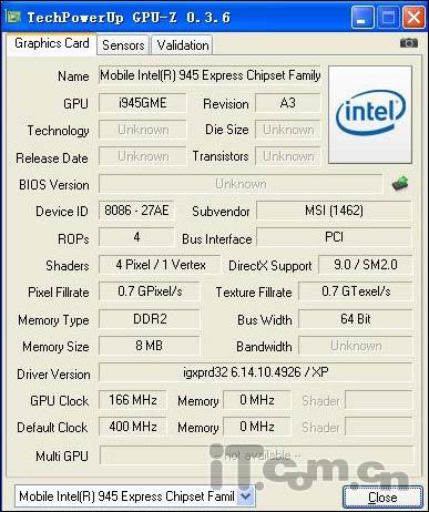 | 显卡 | Intel GMA950 |