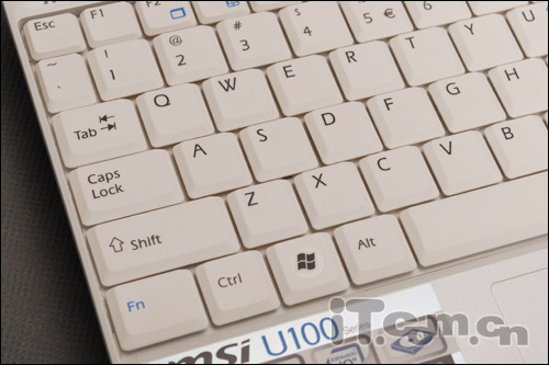 要说到键盘,可是一款本本中相当重要的一部分,同样也是凸显笔记品质的一个特性。微星U100的键盘设计可以说是真正的实现了100%的全尺寸键盘,并采用了涂层设计,这样就避免了键盘经过长期的使用出现脱漆、易脏等问题。