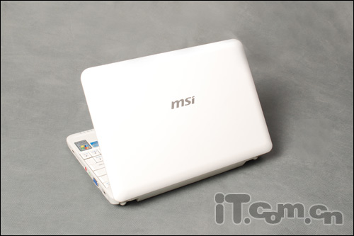 另外微星U100的设计风格属于简约型,我们看到在笔记本外壳中央除了微星“mis”的LOGO外并没有任何的装饰,这样更显得整款本本干净、利落。