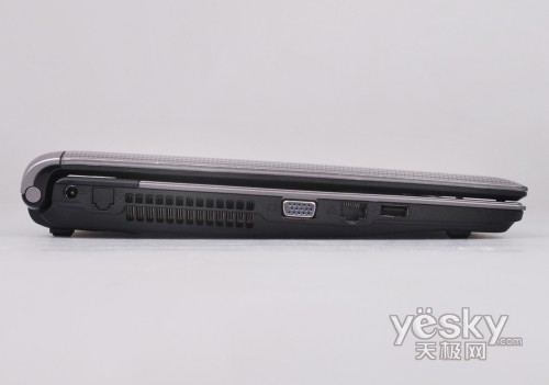 接口包括有3个USB2.0接口,1个ExpressCard扩展卡插槽,1个4合1(SD,MS,MS Pro,MMC)读卡器,1个VGA接口,1个RJ11接口,1个RJ45接口,1组耳麦插孔,直流电源插孔以及安全锁孔等。网络方面则是拥有10-100M网卡和802.11b/g无线网卡。