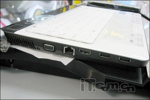 端口方面:3个USB 2.0端口,1个IEEE 1394端口,1个HDMI接口,1个ExpressCard插槽,6合1读卡器(MS, MS Pro, SD/MMC, MMC plus, XD),网卡和调制解调器插孔,耳机和麦克风插孔,VGA输出等。