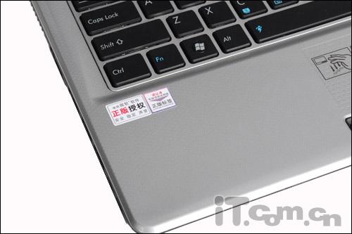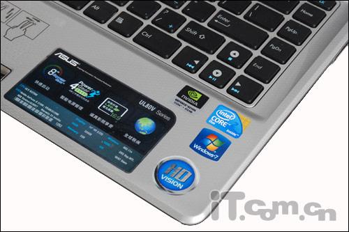 在左掌托部分华硕UL80VT依然保持简约风格,粘贴了微软的正版授权及正版标签的标识,而在右掌托处则要丰富一些,分别粘贴了华硕UL80VT的一些特色功能以及处理器的型号、Win7操作系统的标签等。