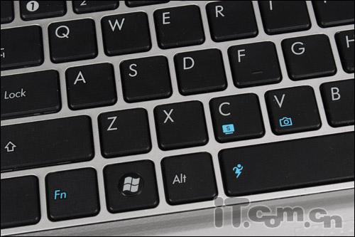 华硕UL80VT既然走的简约的路线,我们看到在C面的操作区并没有设计太多的快捷键,在左上方是华硕UL80VT双显卡切换键,在上面我们已经提到了此按键的作用,在这里就不再过多的讲述了。