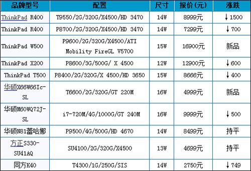 北京地区笔记本高价变化表