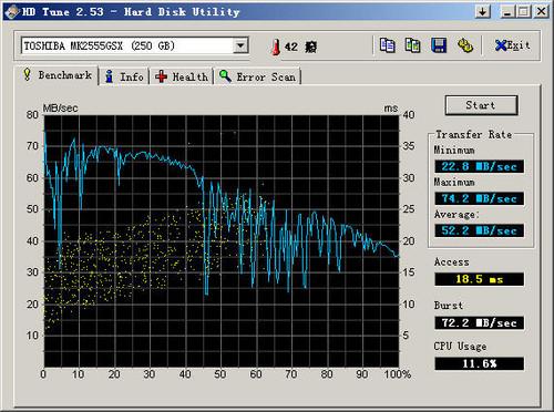 戴尔Latitude 2100硬盘平均传输速度一般,平稳性还算不错