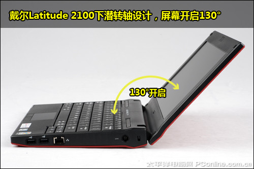 戴尔Latitude 2100采用下潜的转轴设计,最大开启130°开启