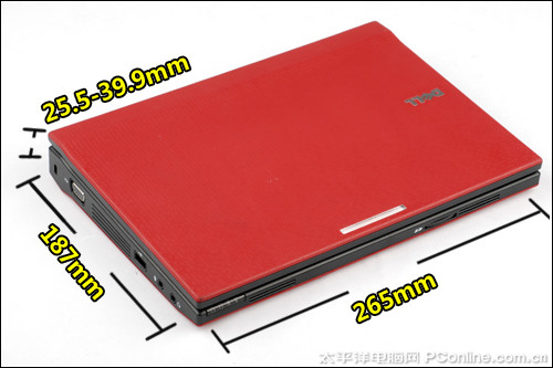 戴尔Latitude 2100厚度控制处于中游水平,不算薄,但也不会感觉厚重。重量实测:1.316Kg的整机重量虽然在上网本中不算出类拔萃,但依然小巧,拿着它就像拿着一本书般轻便。