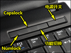 戴尔Latitude 2100的快捷键以及电源开关均设计在键盘的上方,左测为音量控制区域,右侧为电源开关及切换键指示灯。