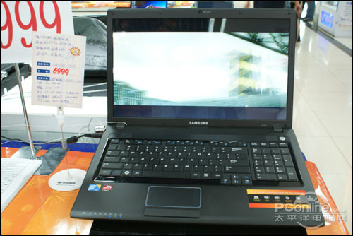 要大就要大得彻底,17寸的“巨本”三星 R718-DS01,同样也是冲着影音定位而来,在宣传海报上毅然打出了“影帝”的称号,霸气十足。外观上并没有什么特别,就是普通的黑色钢琴烤漆,但 17.3寸的屏幕抢尽了风头,16:9的比例,更加显得机子的宽阔,分辨率高达1600×900,秒杀本次导购,而且传承三星在LED背光屏上的优良血 统,欣赏起电影来真是十足享受。键盘开阔,各区域划分清晰,快速输入随心所欲。