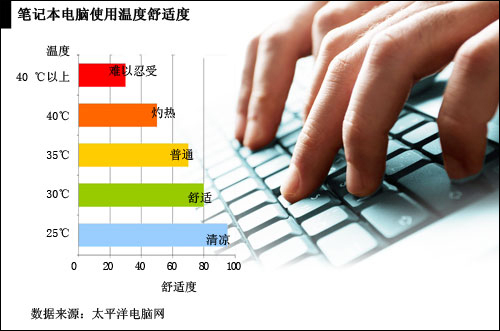 超锐S10采用功耗低、发热量小的低电压处理器,整机在散热方面表现尤为出色。在28°室温下,S10键盘表面温度最高仅为34°,这对于用户的日常操作毫无影响。机身底部温度最高为37°,集中在硬盘设计位置,这个小本放腿上办公还是不成问题的。