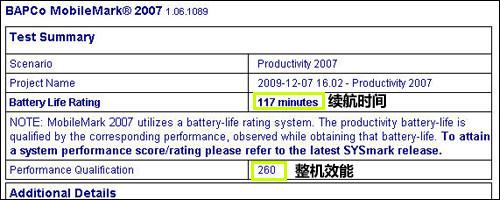 MobileMark 2007是Bapco推出的第三版的MobileMark测试软件。自2002年开始,PConline评测室始终坚持采用这一业界最权威的笔记本测试软件——MobileMark。经过了几年的更新换代,MobileMark先后经历了2002、2005以及现在的2007版本。测试项目也从过去的单纯的办公和多媒体制作性能测试到包含DVD播放、纯阅读、无线上网等多项目测试。