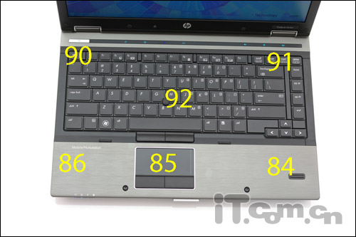 另外HP EliteBook 8440w的又一大特点就是采用了指点杆设计,说到指点杆,大家可能优先想到的就是ThinkPad的“小红点”。不过指点杆并不是ThinkPad的独享功能,惠普同样采用了这种设计,对于没有鼠标的用户来说,我们认为指点杆的操控性要远优于触控板。