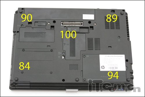 与消费类的笔记本相比大多的商务型笔记本对于用户自己升级内部结构是很不方便的,然而我们看到HP EliteBook 8440w的底部有着三处的可拆卸区域,对于用户自己升级内存等是非常方便的。