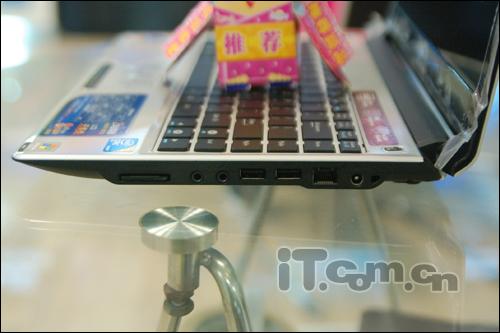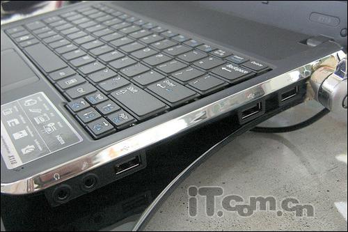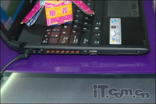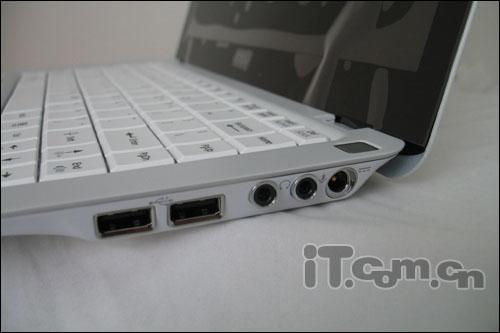 端口方面:2个USB 2.0端口,1个ExpressCard插槽,多功能读卡,网卡和调制解调器插孔,耳机和麦克风插孔,VGA端口等。