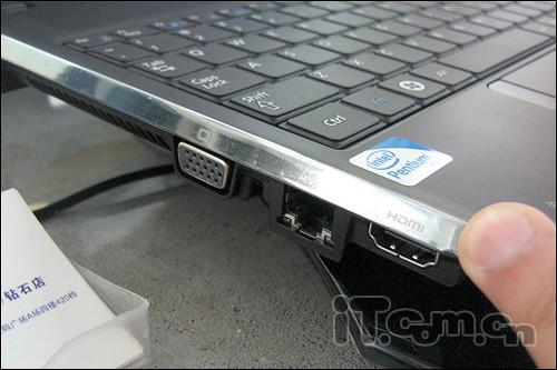 端口方面:3个USB 2.0端口,1个HDMI接口,1个Expresscard插槽,多功能读卡器,网卡和调制解调器插孔,耳机和麦克风插孔,VGA端口等。