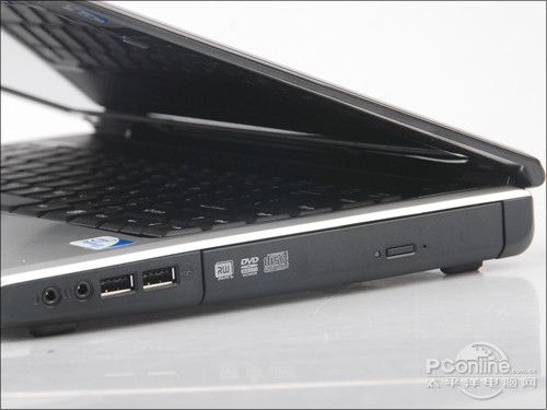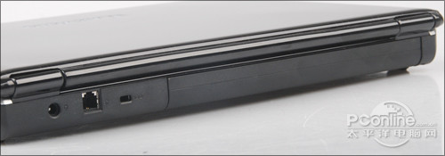 技嘉 Q1458L机身右侧接口相对拥挤,由于光驱占据了大半空间,用户常用的两个USB接口间距过小,不方便同时插入操作。机身背部设计了电源插孔及RJ45接口,这也缓解了两侧接口布局过于紧密的压力。