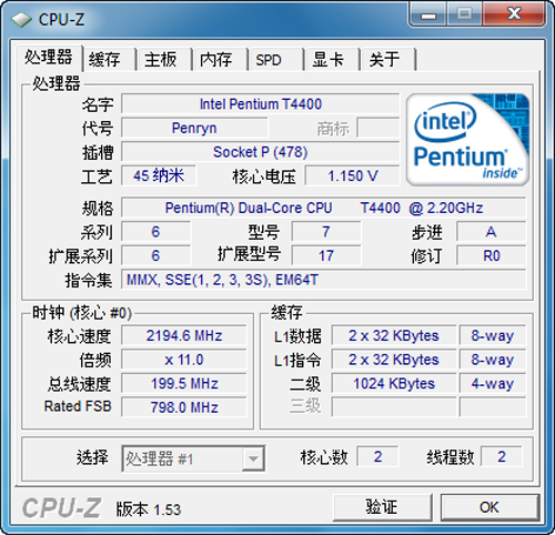 | 处理器 | Intel Pentium Dual-Core T4400(2.2GHz) |