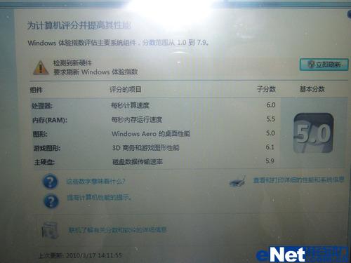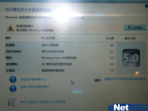 笔者现场简单使用系统自测了一下,得分均为5.0分,瓶颈在于图形项。具体每项得分如下: