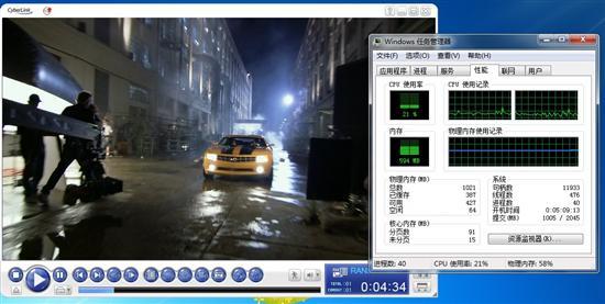 测试选择的两个影片都是1080P分辨率的,实际使用中大多数用户都会因为分辨率的原因而选择720P影片,所以CPU占用率上也会更低,CQ-40强大的高清播放能力可以胜任家庭影院的角色,如果用户觉得小屏幕不过瘾,还可以通过本本的HDMI接口将影片传输到客厅里的大屏幕电视上。