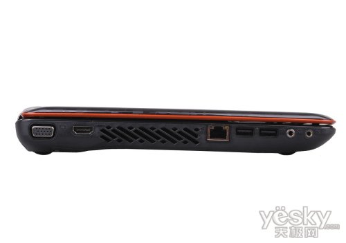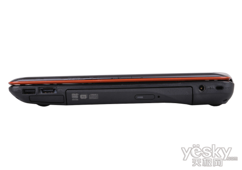 接口方面,Y460笔记本机身左侧拥有2个USB2.0接口、VGA接口、HDMI接口、RJ-45接口以及音频输入输出接口;右侧拥有一个USB 2.0接口、一个eSATA/USB两用接口、光盘驱动器和电源适配器以及笔记本锁口。在笔记本前部,提供了一个多功能读卡器接口、一个图形处理器切换开关以及一个无线网卡开关系。