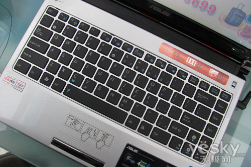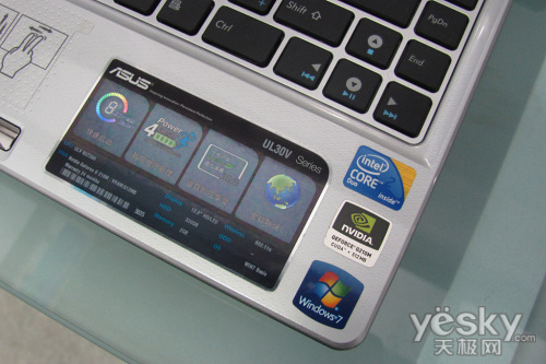 银灰色的内饰,搭配黑色的键盘,在色彩上更具现代感。悬浮式设计的笔记本键盘,较大的按键间距,华硕UL30K73VT在连续键入时减少了误按;掌托部分采用了华硕独有的“Ice Cool”散热设计,使用时更低的掌托温度,保证了舒适的触感。