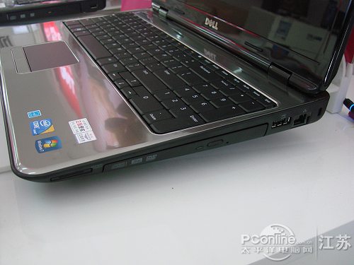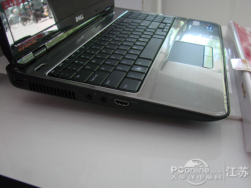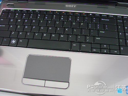 戴尔Insprion系列键盘区,LCVM材质虽然不是金属,但是拉丝的感觉还是比较不错的。