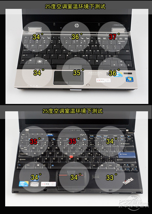 | 惠普EliteBook 2540p对比 ThinkPad X201iC面散热性能对比 | ||||||