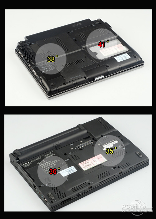 | 惠普EliteBook 2540p对比 ThinkPad X201i D面散热性能对比 | ||||||