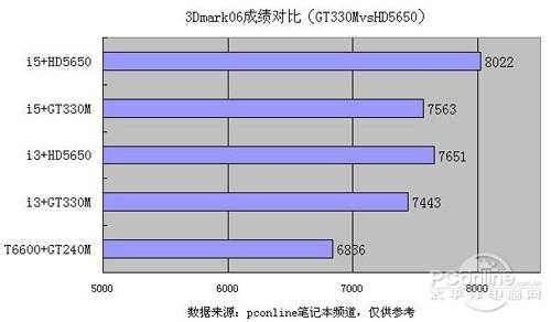 3Dmark06成绩,HD5650稍微领先,差别并不明显