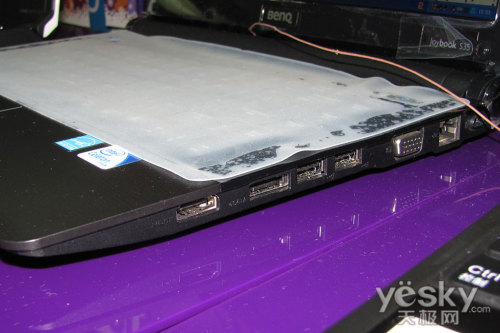Joybook S35提供了最新的eSATA接口,支持热插拔,最大传输速度可达1.5Gbps。而像USB接口也有三个,视频输出方面则有VGA模拟信号接口和HDMI高清接口。网络方面,内建千兆以太自适应网卡和802.11b/g/n无线网卡,屏幕上方内置130万像素摄像头。