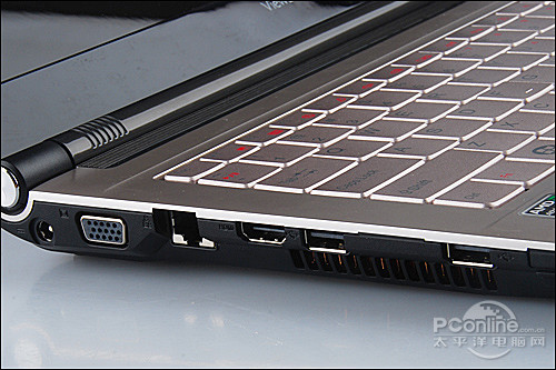 在外部拓展方面VNB142提供了包括3个USB接口、1个VGA接口、1个HDMI接口、1个RJ-45接口、一组音频输入输出接口和7合1读卡器等多种选择。这样的配备大体上能够满足一般办公的需要。