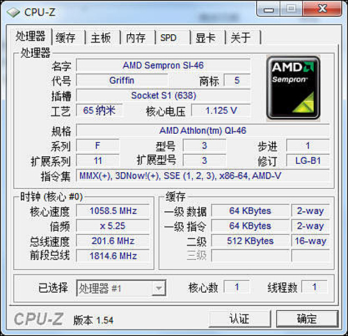 AMD Athlon(tm) QI-46是一款基于65nm工艺制作的单核心单线程处理器,其主频为2.1GHz且拥有512KB二级缓存,支持x86、x86-64、MMX、3DNow!、SSE、SSE2、SSE3 指令集。
