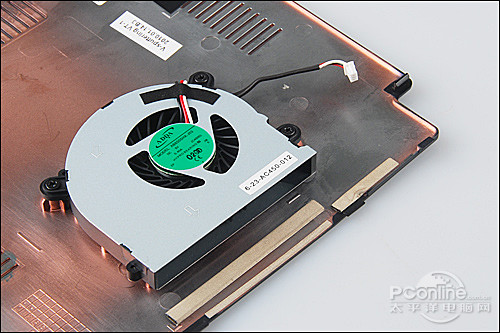 优派VNB142的散热风扇被固定在后盖的一角,当后盖被拆卸下来时,风扇的整体会随之一同被取下,这是在笔记本中比较少见的设计,主要目的在于方便用户清洁或者更换风扇本身,延长笔记本使用寿命。