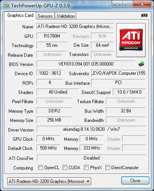 | 显卡 | ATI Radeon HD 3200 |