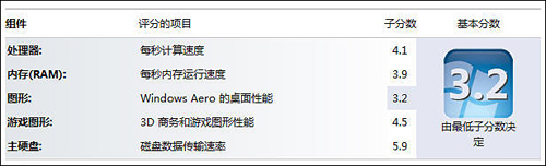 从系统评估来看,这款VNB142的整体最终得分为分3.2,从各项目得分显示的情况来看,桌面图形处理能力成为了系统的瓶颈,从系统评估的帮助内容来看,3.2分的桌面图形显示性能对于用户开启AERO及其它Windows桌面特效已经造成了一定的影响。而在其他的子项中,硬盘部分得到了5.9分成为所有子项目中的最高分。综合系统评估得分来分析,桌面图形处理能力部分的得分是整个系统中的最低分,其性能已经对用户开启桌面特效造成了一定的影响,而处理器、内存以及硬盘部分的性能相对较好且均可以满足一定的应用需求。