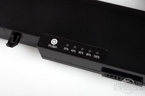 我们在电池上还发现了比较人性化的一点:容量指示灯。轻按PUSH按键,相应的指示灯就会变成绿色。有了这个提示,我们就可以在不开机的情况下查询到电池的剩余电量,以此决定是否携带电源适配器。