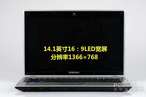 14.1英寸的三星Q430在屏幕方面采用了主流的16:9LED宽屏,最佳分辨率为1366×768。屏幕上方的摄像头只有30万像素,略显“小气”。