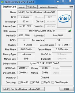 | 显卡 | Intel GMA500集成显卡 | ||||