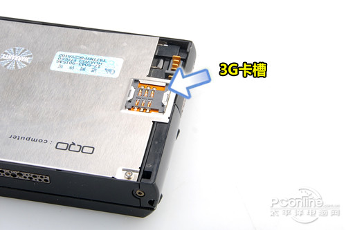 取下机身背部的电池后我们发现了该机内置了3G卡槽,这点设计最大程度满足了用户随时随地上网的需求。此外,该机在右上角还配备有无线信号增强天线,同样为用户的随时随地上网提供了便利。
