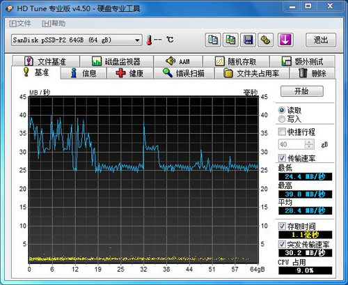 该固态硬盘的传输速度一般,但存取时间凸显了优势,仅有1.1毫秒。