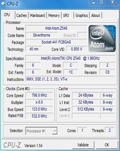 介绍完外观、细节信息后,我们再来了解一下这款产品的硬件配置。前面提到了,这是一款预装了Windows 7专业版操作系统的产品。具体硬件方面,该机使用了Intel Atom Z540和Intel GMA500的组合,处理器主频为1.86GHz。标配2GB内存和64GB SSD固态硬盘,整体表现中规中矩。
