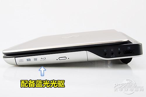 机身右侧由左至右依次分布着刻录光驱、音频输出/输入插孔以及eSATA接口。值得一提的是,戴尔XPS L501X搭载了较为高端的蓝光光驱,配合全高清的屏幕,在欣赏电影大片时会带了更为震撼的视觉场面。